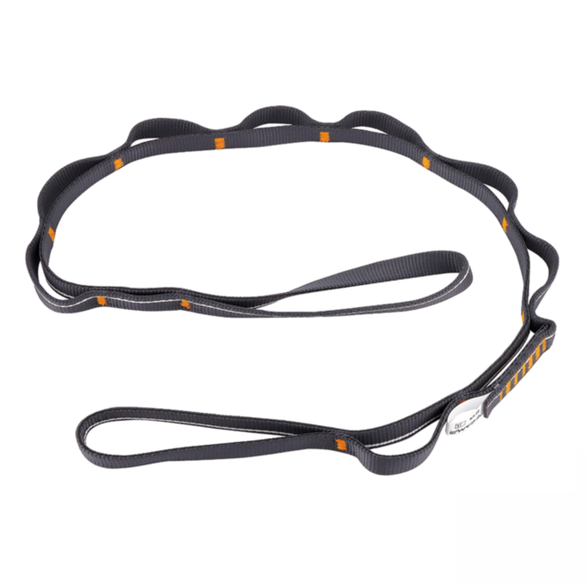 16mm polyamide Daisy Chain with standard construction. The bottom loop has a twist so that it girth hitches cleanly to a climbing harness. WARNING: never cross-clip two loops of a Daisy Chain—full strength comes from the main bartack and not the individual loop stitches.