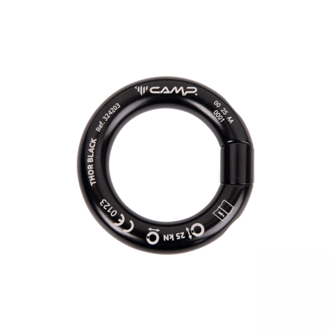 With a breaking load of 25 kN and numerous certifications including EN and ANSI, the Thor is the strongest openable ring on the market. The tapered interlocking closure with a threaded pin is very easy to use and delivers a very high level of safety. The circular shape provides full strength in all directions.